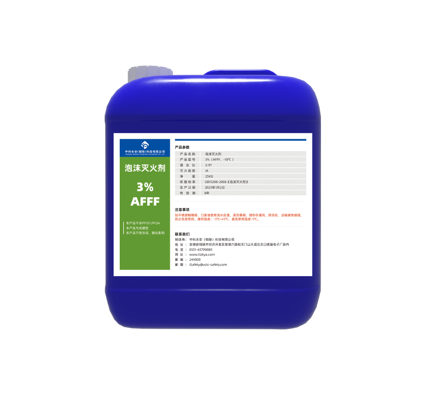 环保型水成膜泡沫灭火剂通过在燃料表面和空气临界点形成水膜,由于其极低的表面张力在燃料表面快速铺展。水成膜泡沫在燃料表面形成致密的泡沫层隔绝氧气,快速铺展从而快速灭火。其有较强稳定性,可抑制液体燃料挥发,防止复燃,用于原油、石油、柴油和航空燃料等非水溶性可燃、易燃液体火灾的预防与扑救。