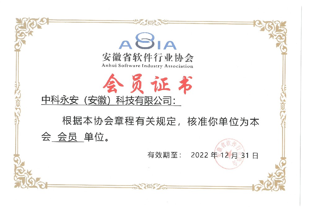 安徽省软件行业协会会员证书